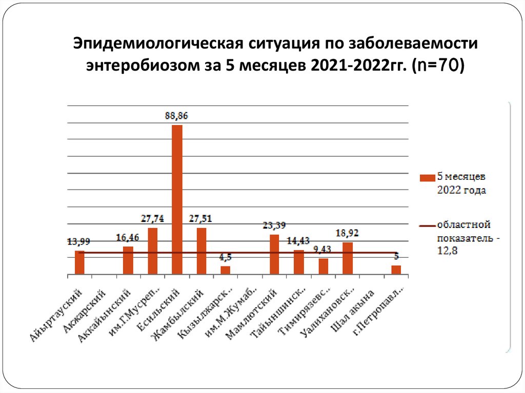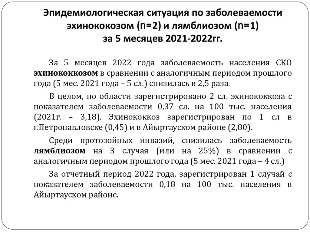 Эпидемиологическая ситуация паразитарных и трансмиссивных заболеваний в Северо-Казахстанской области за 5 месяцев 2022 года