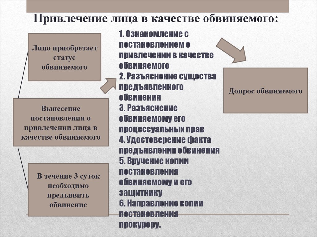 Привлечение лица в качестве обвиняемого:Лицо приобретает