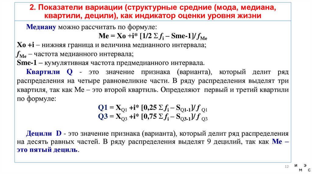 Ме = Хо+i* [1/2 Σ fi – Sme-1]/ fMе