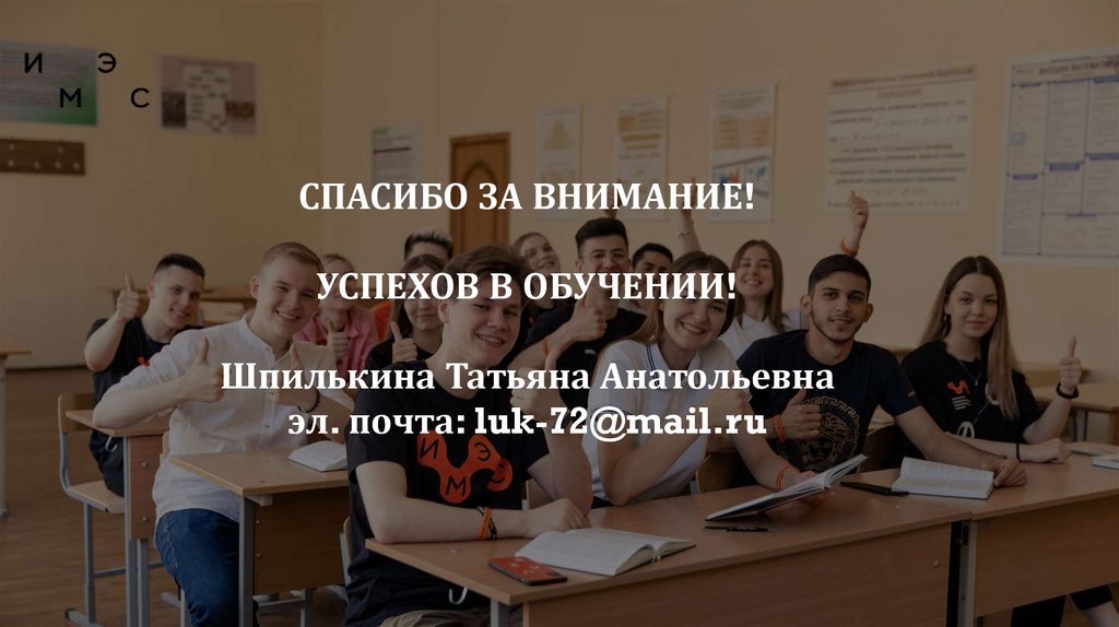 СПАСИБО ЗА ВНИМАНИЕ!УСПЕХОВ В ОБУЧЕНИИ!