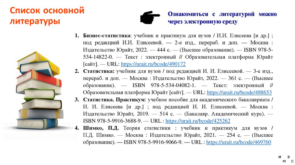 1. Бизнес-статистика: учебник и практикум для вузов / И.И. Елисеева [и др.] ;