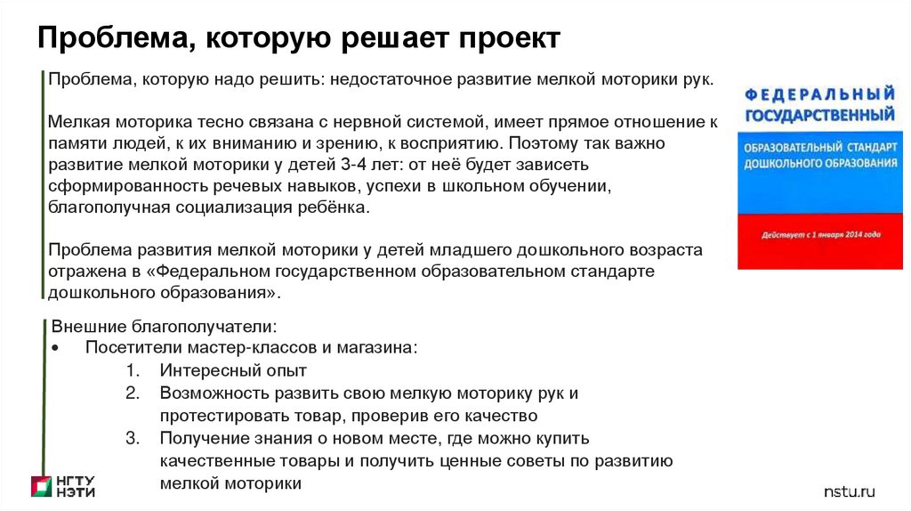 Проблема, которую решает проектПроблема, которую надо решить: недостаточное развитие мелкой моторики рук.