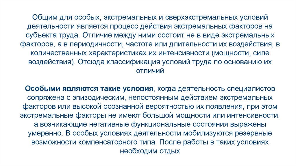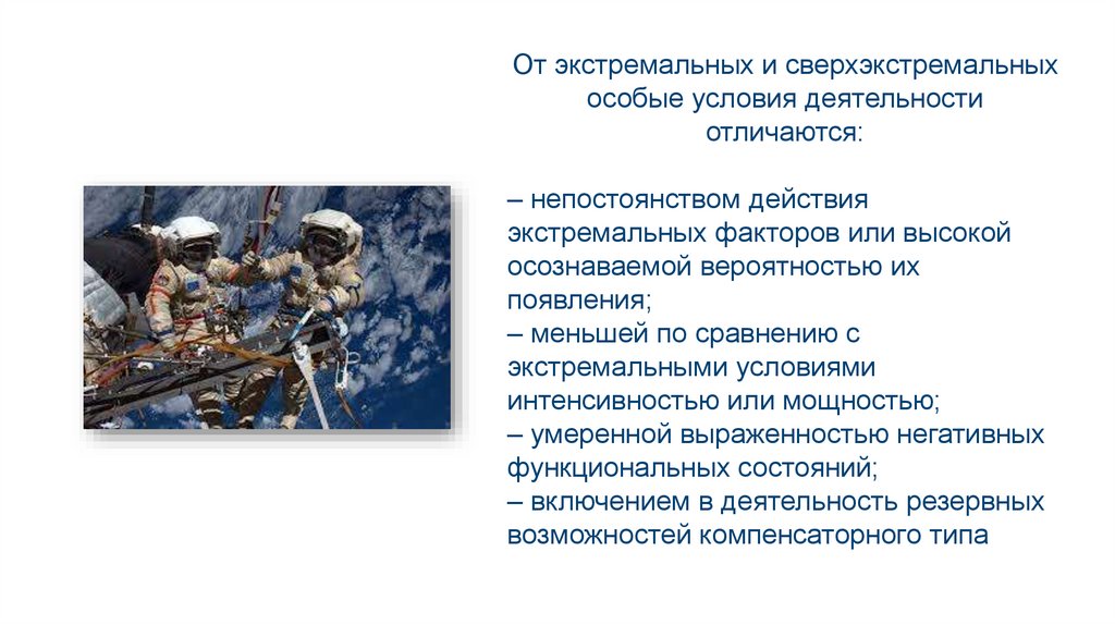От экстремальных и сверхэкстремальныхособые условия деятельности