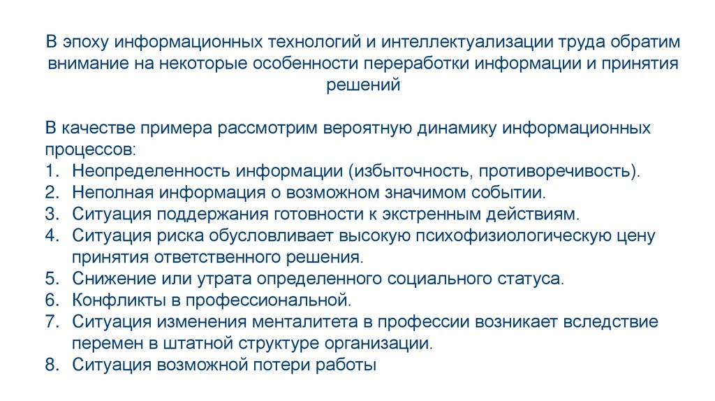 В эпоху информационных технологий и интеллектуализации труда обратимвнимание на некоторые особенности переработки информации и принятия