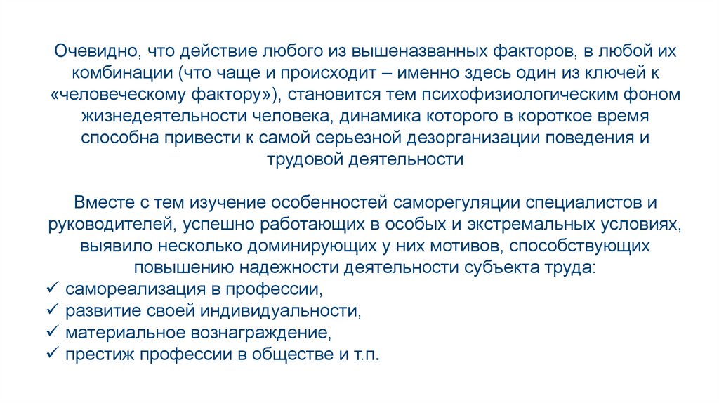 «человеческому фактору»), становится тем психофизиологическим фоном