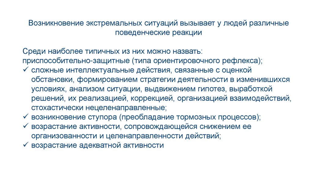 Возникновение экстремальных ситуаций вызывает у людей различныеповеденческие реакции