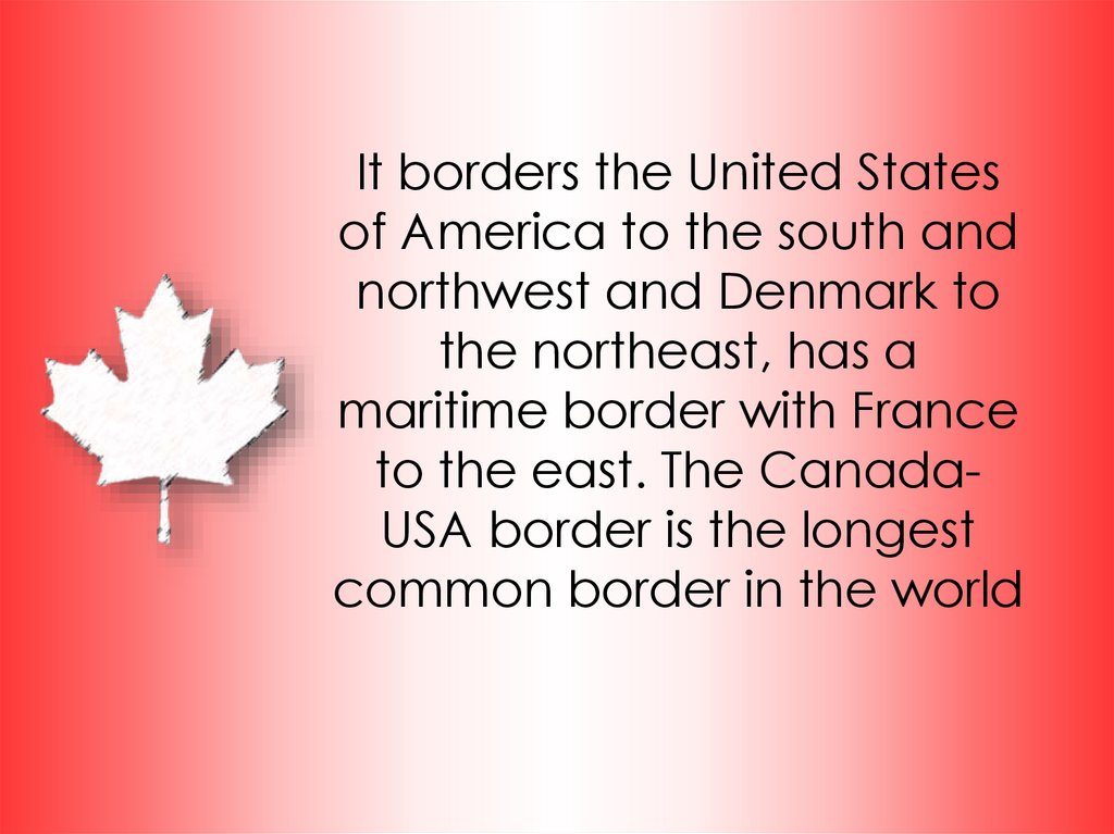 to the east. The CanadaUSA border is the longest