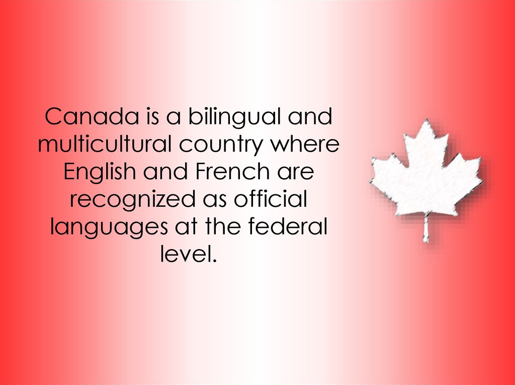 Canada is a bilingual andmulticultural country where