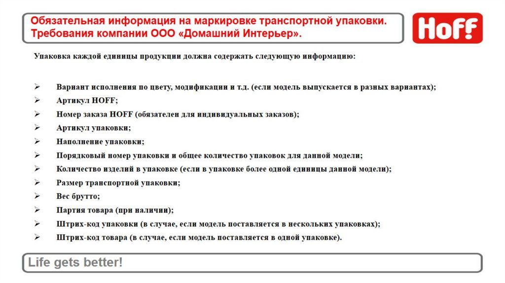 Обязательная информация на маркировке транспортной упаковки. Требованиякомпании ООО «Домашний Интерьер».