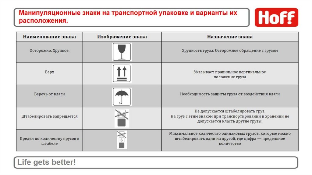 Манипуляционные знаки на транспортной упаковке и варианты ихрасположения.