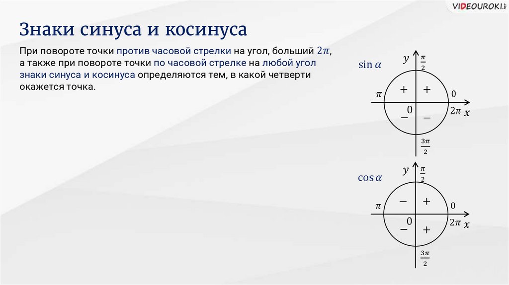 2. Выясним, какие знаки имеют синус и косинус,