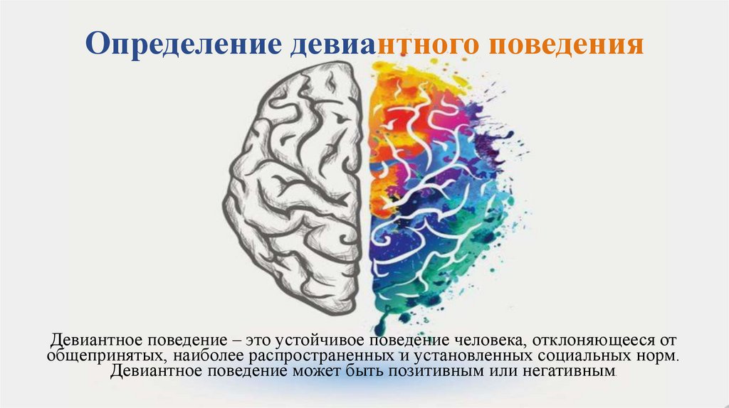 Определение девиантного поведенияДевиантное поведение – это устойчивое поведение человека, отклоняющееся от