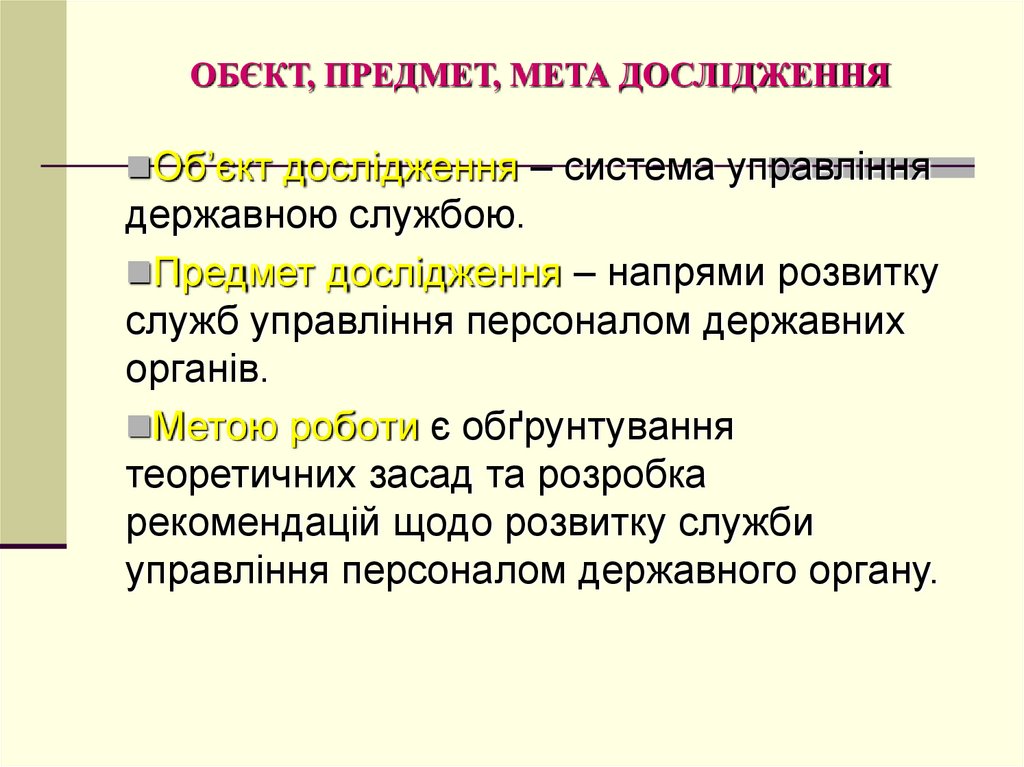 ОБЄКТ, ПРЕДМЕТ, МЕТА ДОСЛІДЖЕННЯOб’єкт дocлiдження – cиcтемa упрaвлiння