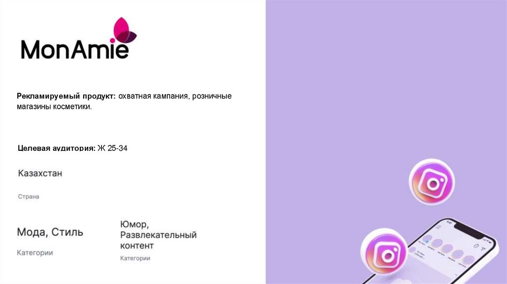 Рекламируемый продукт: охватная кампания, розничныемагазины косметики.