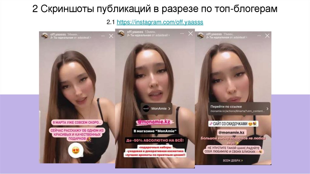 2 Скриншоты публикаций в разрезе по топ-блогерам2.1 https://instagram.com/off.yaasss