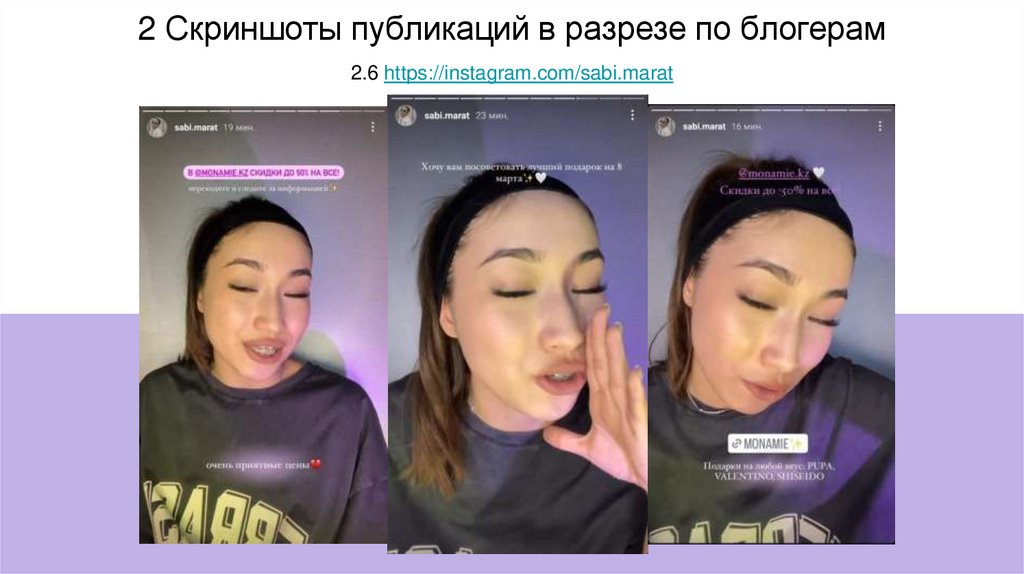 2 Скриншоты публикаций в разрезе по блогерам2.6 https://instagram.com/sabi.marat