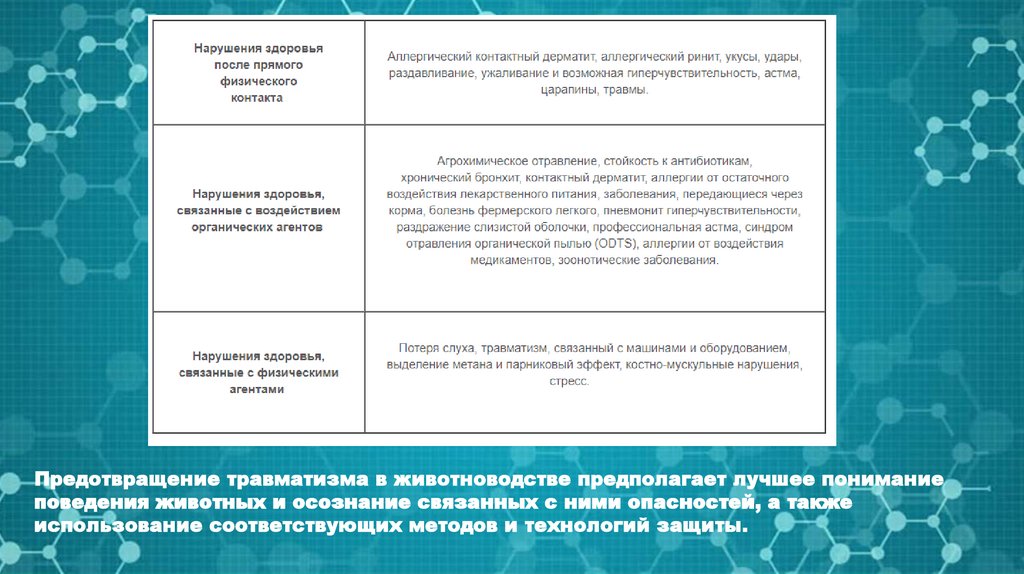 Предотвращение травматизма в животноводстве предполагает лучшее пониманиеповедения животных и осознание связанных с ними опасностей, а также