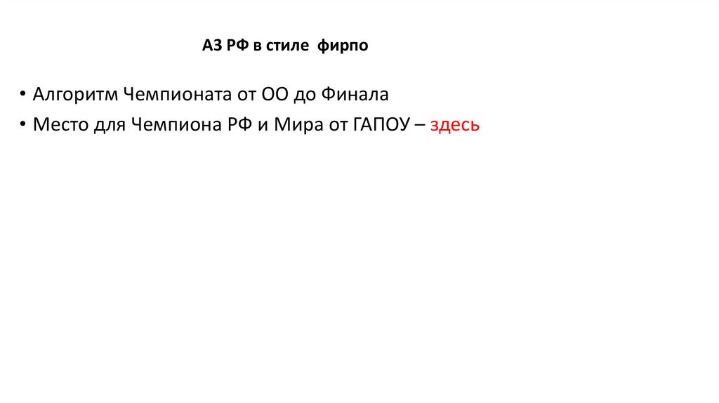 А3 РФ в стиле фирпо• Алгоритм Чемпионата от ОО до Финала