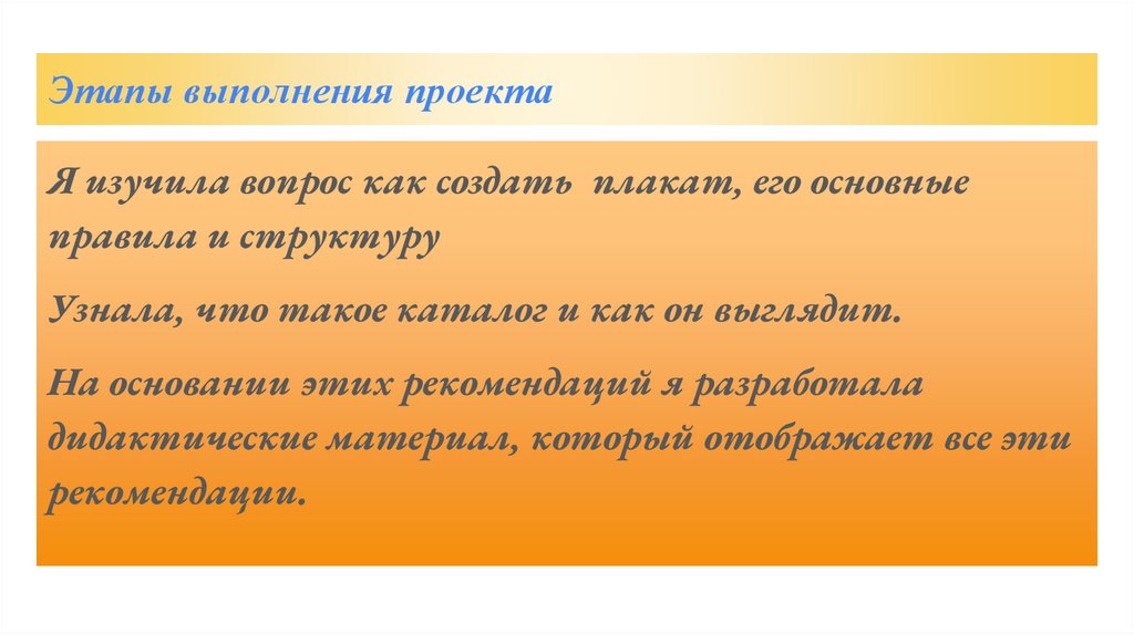 Этапы выполнения проектаЯ изучила вопрос как создать плакат, его основные
