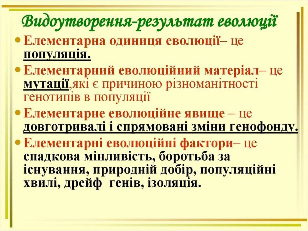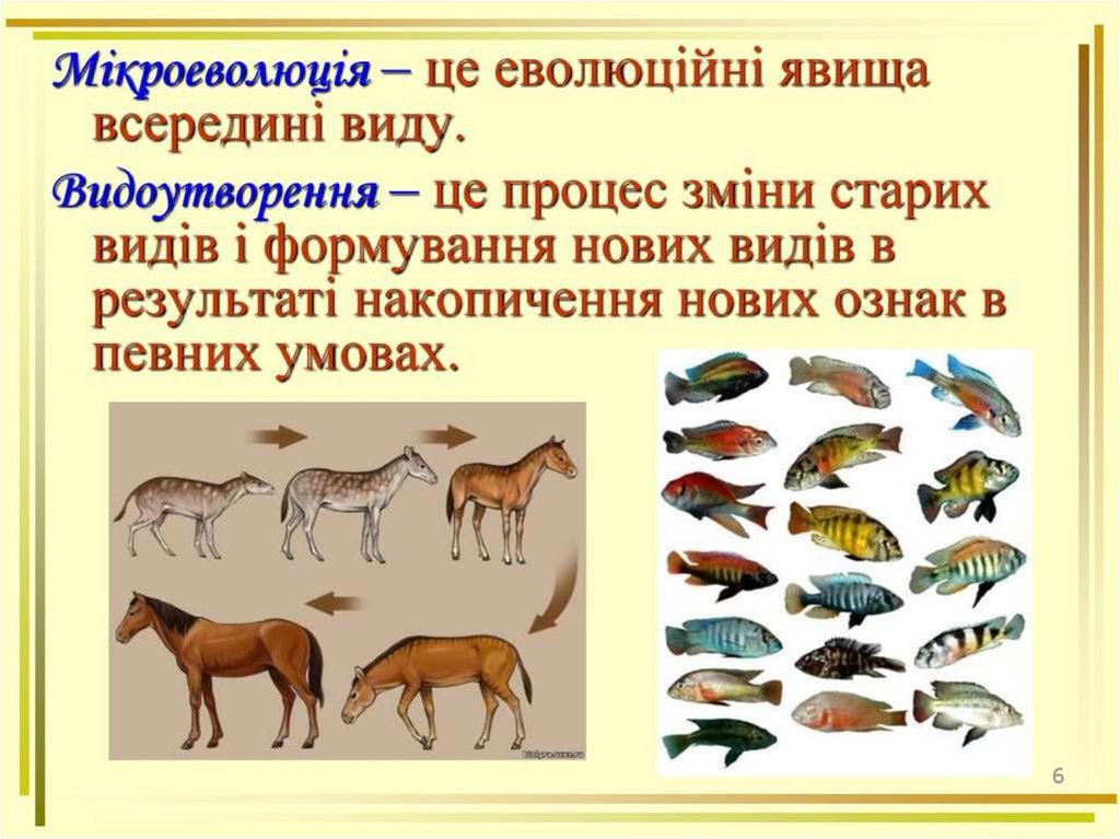 Мікроеволюція – це еволюційні перетвореннявсередині виду (на рівні популяції), які