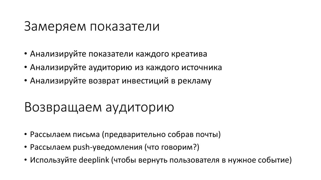 • Используйте deeplink (чтобы вернуть пользователя в нужное событие)