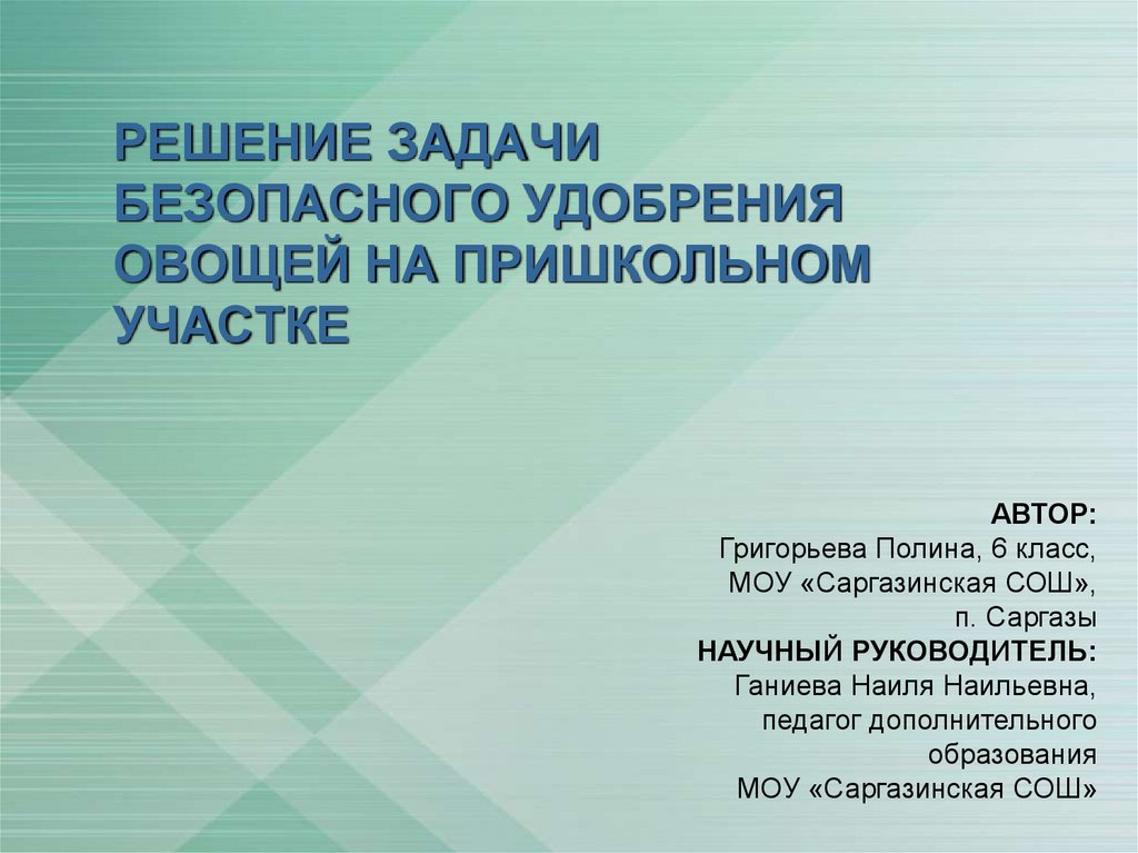 Решение задачи безопасного удобрения овощей на пришкольном участке