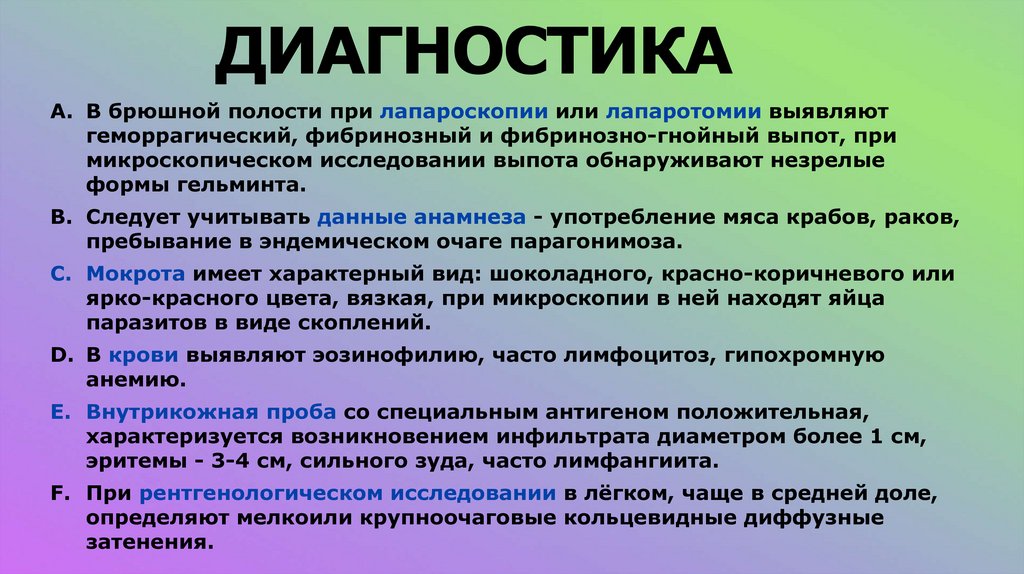лёгочного парагонимоза. Наиболее
