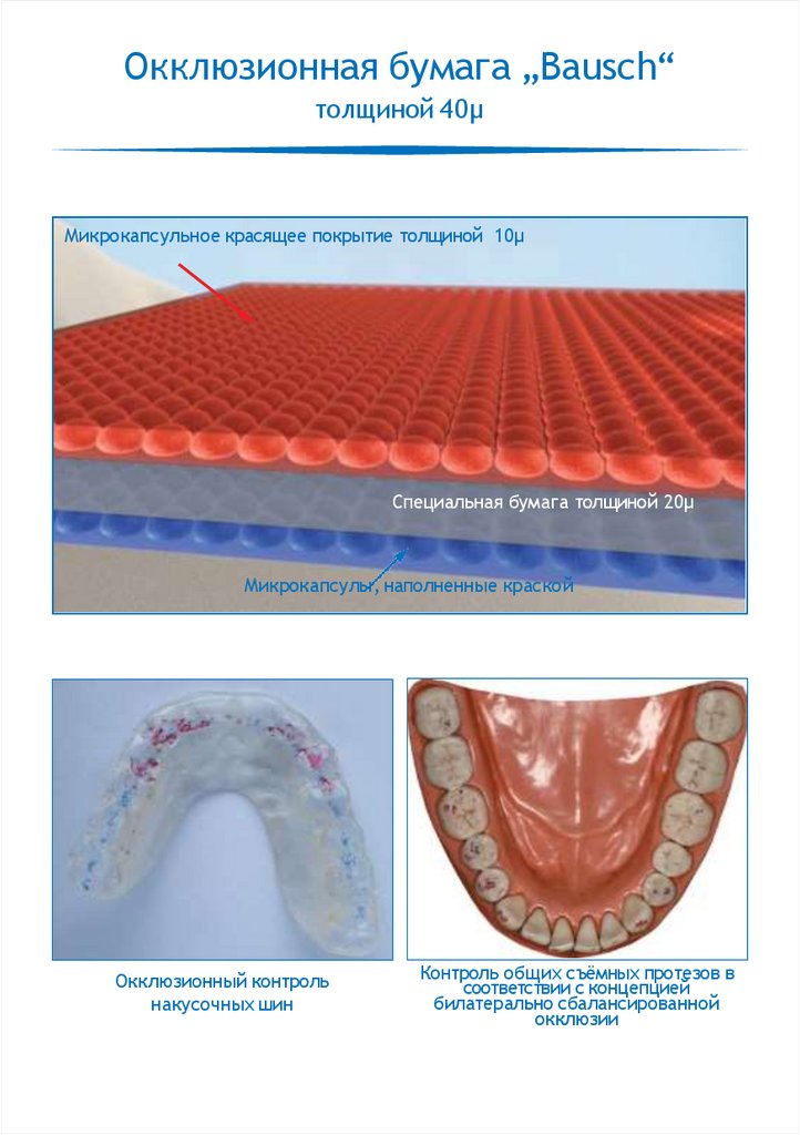 Окклюзионная бумага „Bausch“толщиной 40μ