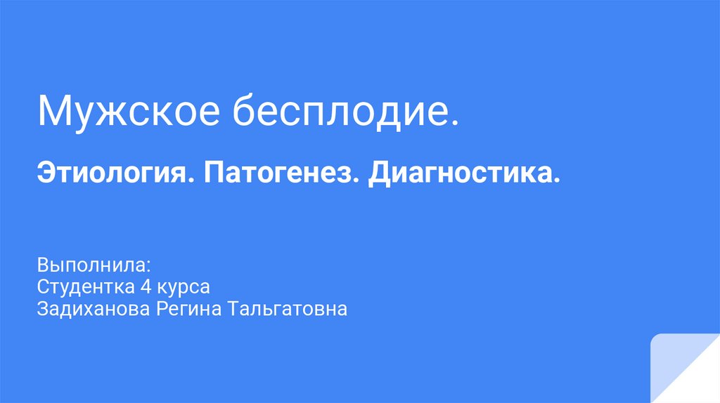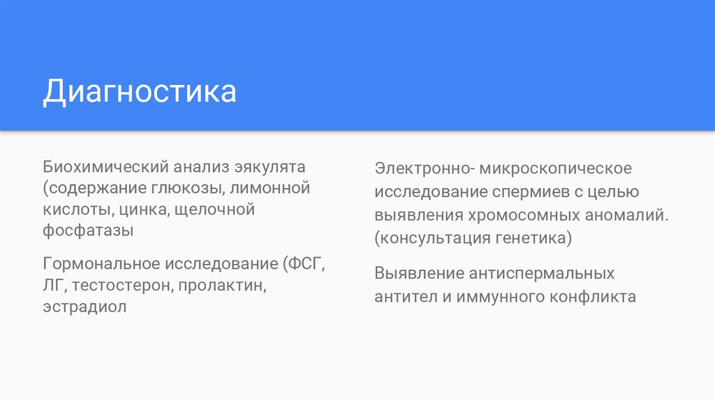 Мужское бесплодие. Этиология. Патогенез. Диагностика