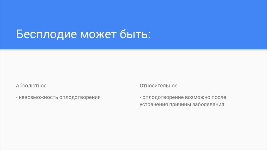 Две основные группы мужского бесплодия:1) Секреторное бесплодие (отсутствует