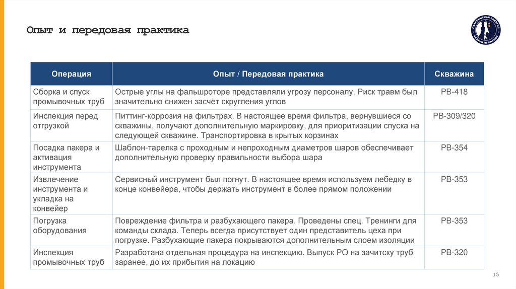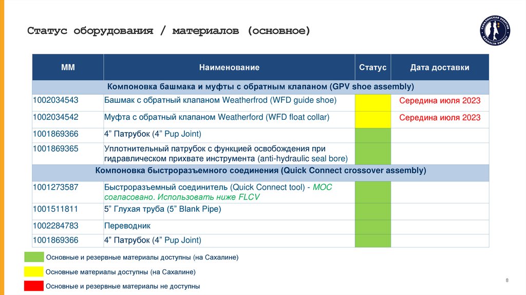 Разработана отдельная процедура на инспекцию. Выпуск PO на зачитску труб