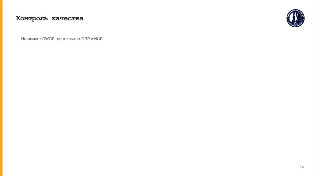 Контроль качестваНа момент CWOP нет открытых ORP и NCR