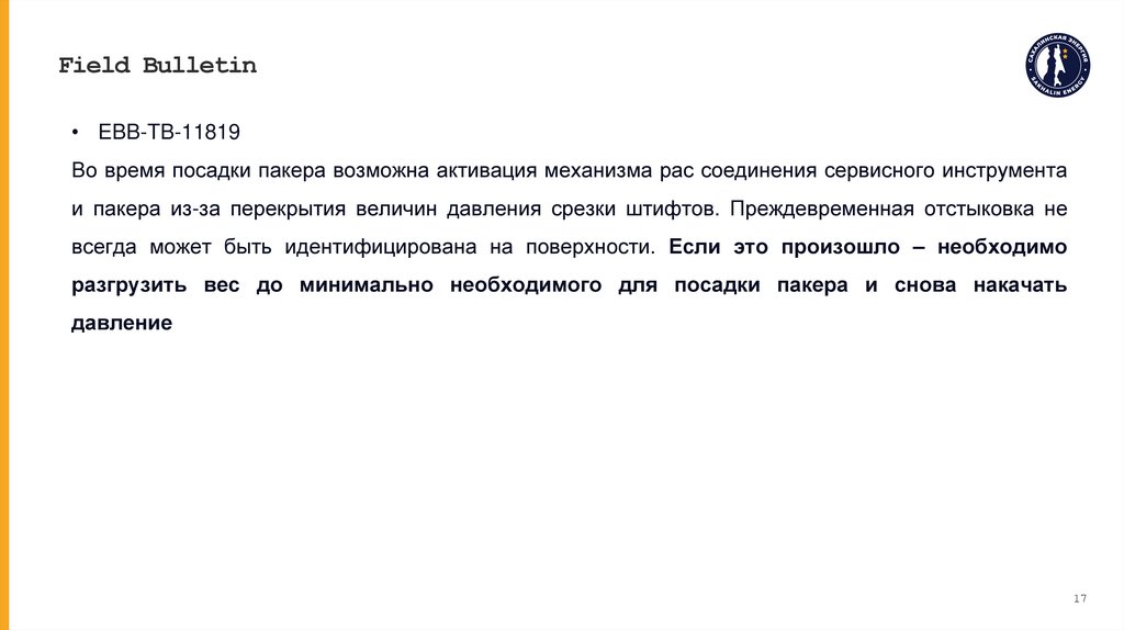 и пакера из-за перекрытия величин давления срезки штифтов. Преждевременная отстыковка не