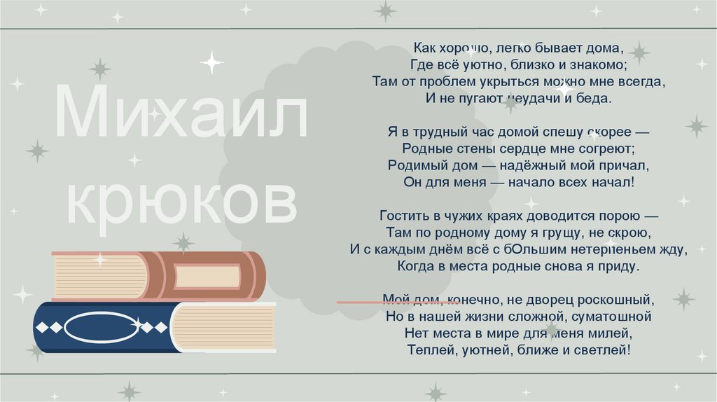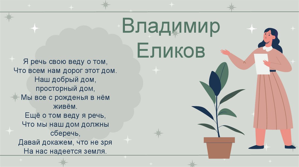 Я речь свою веду о том,Что всем нам дорог этот дом.