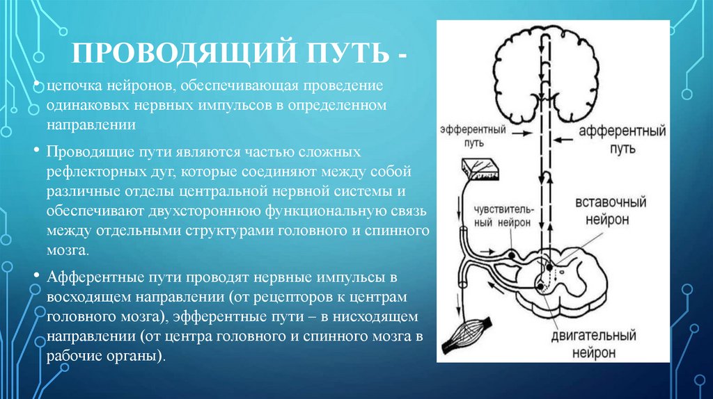 ПРОВОДЯЩИЙ ПУТЬ • цепочка нейронов, обеспечивающая проведениеодинаковых нервных импульсов в определенном