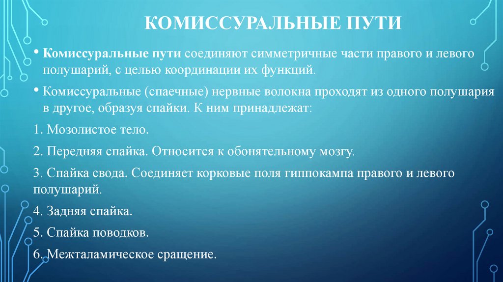 ТИПЫ ПРОВОДЯЩИХ ПУТЕЙКомиссуральные