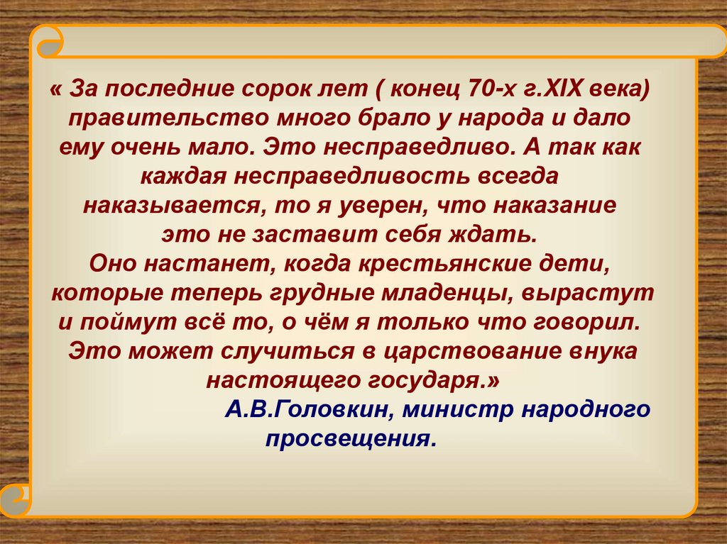 « За последние сорок лет ( конец 70-х г.XIX века)правительство много брало у народа и дало
