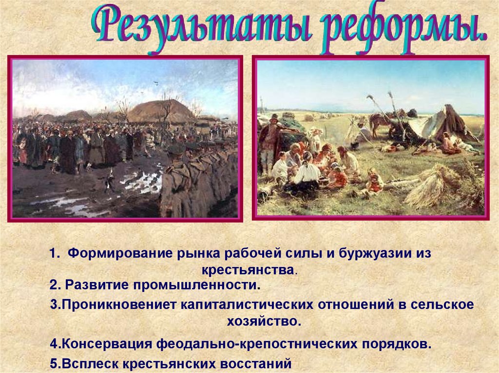 1. Формирование рынка рабочей силы и буржуазии изкрестьянства.