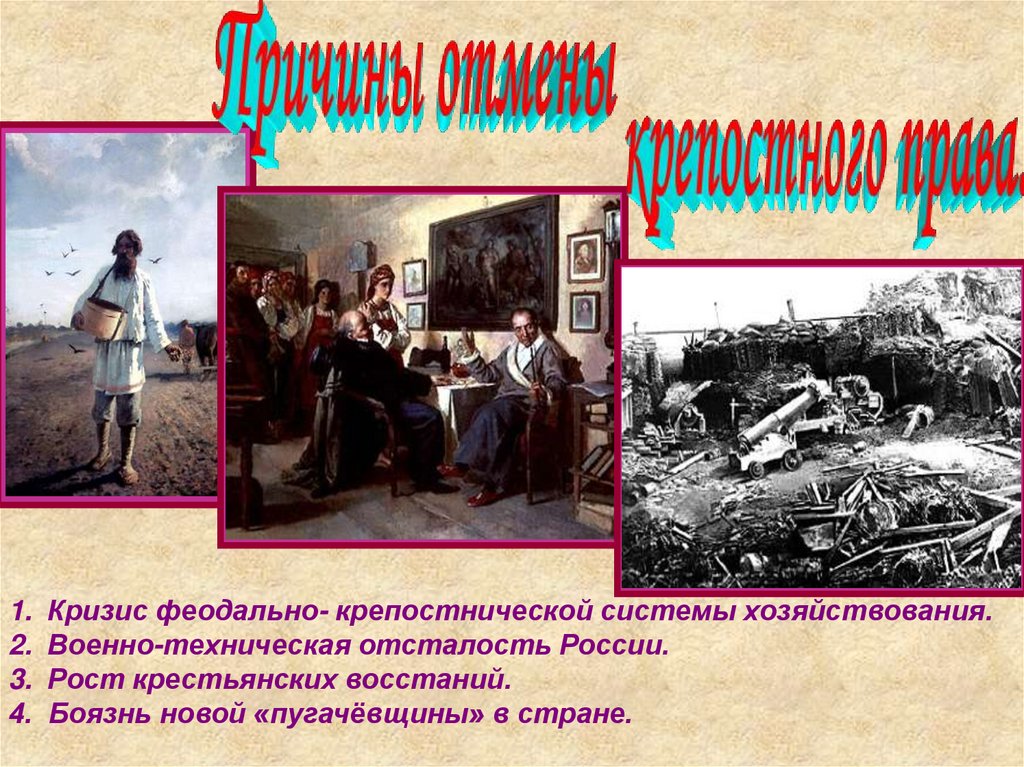 1. Кризис феодально- крепостнической системы хозяйствования.2. Военно-техническая отсталость России.