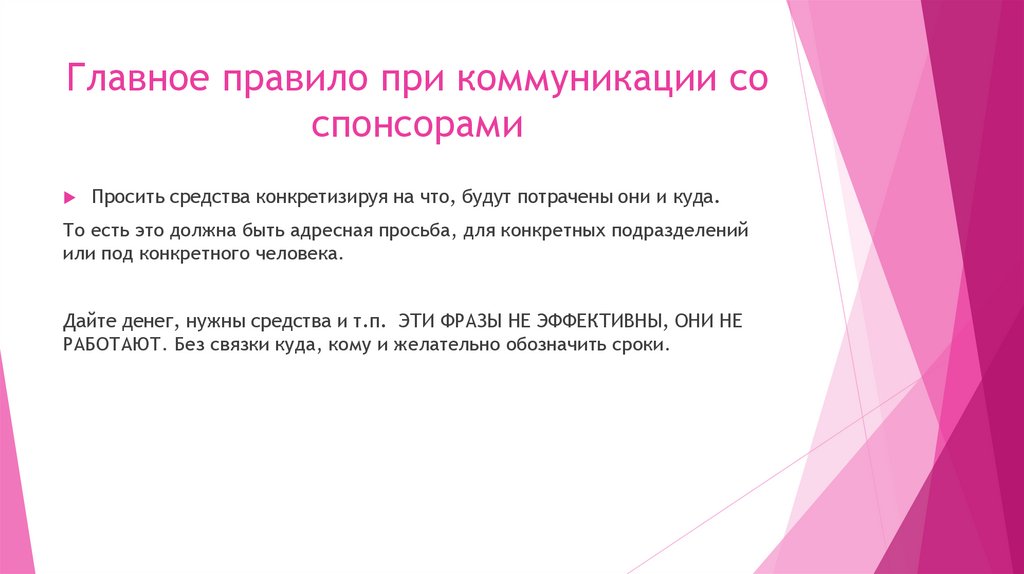 Дайте денег, нужны средства и т.п. ЭТИ ФРАЗЫ НЕ ЭФФЕКТИВНЫ, ОНИ НЕ