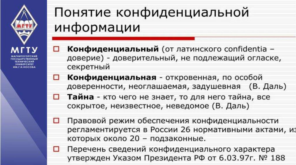 Понятия и содержание конфиденциальной