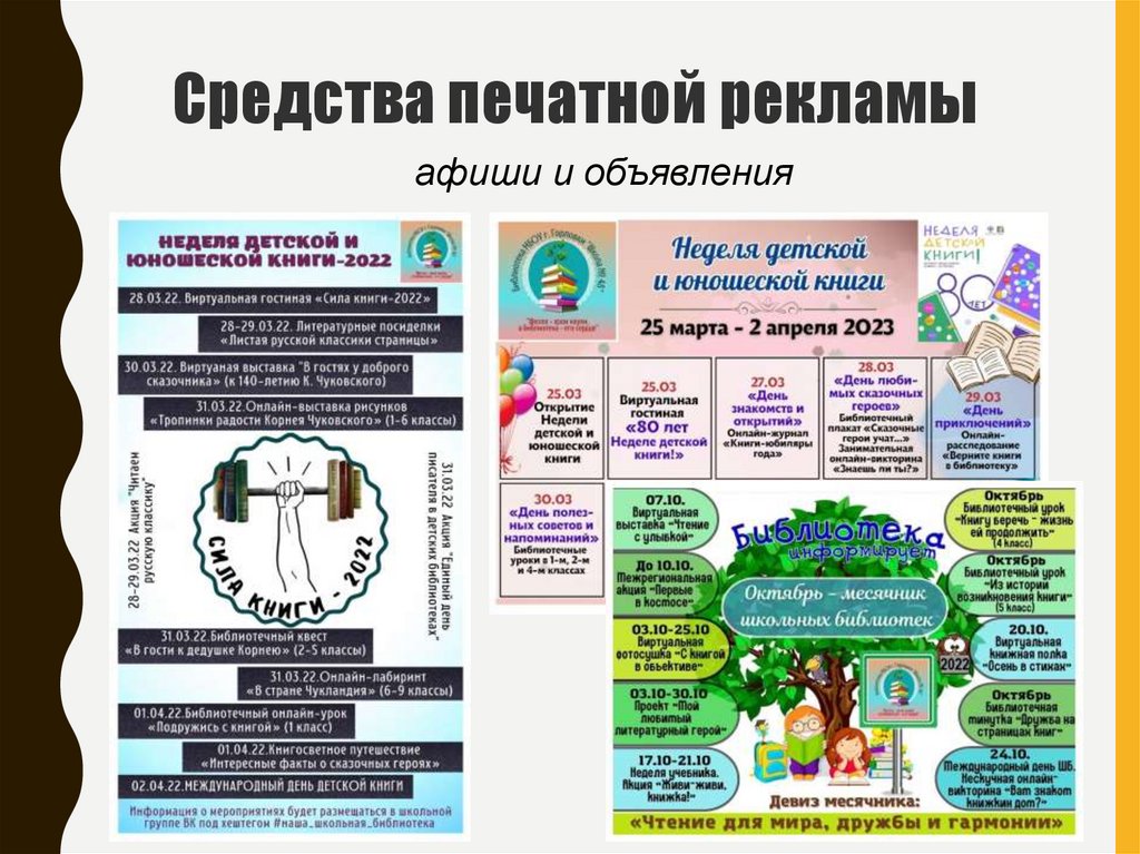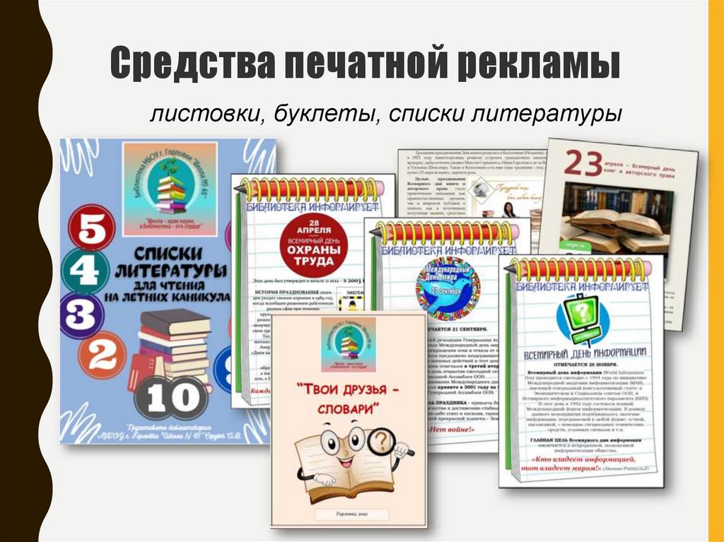 Средства печатной рекламылистовки, буклеты, списки литературы