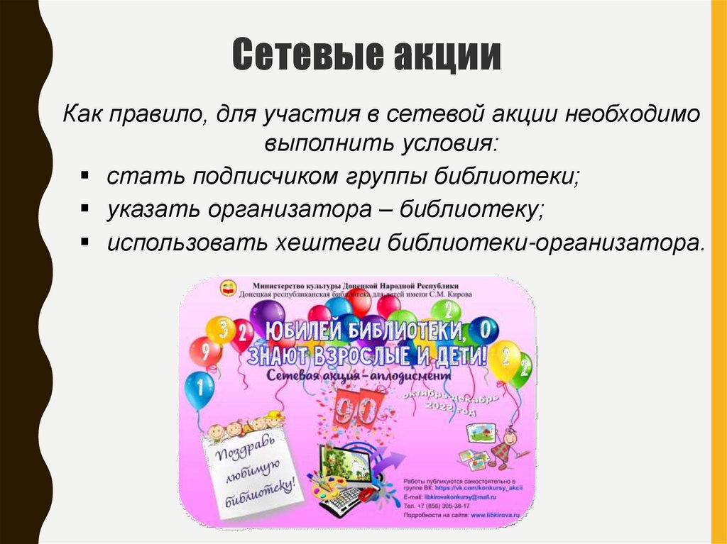 Сетевые акцииКак правило, для участия в сетевой акции необходимо