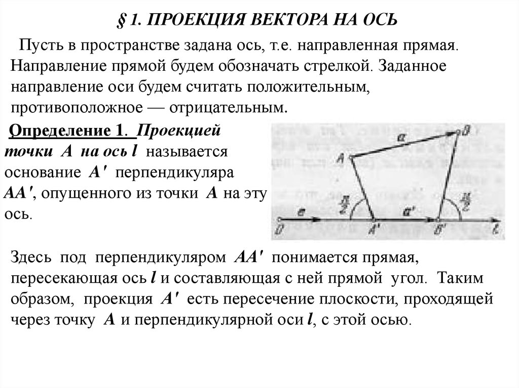 § 1. ПРОЕКЦИЯ ВЕКТОРА НА ОСЬПусть в пространстве задана ось, т.е. направленная прямая.
