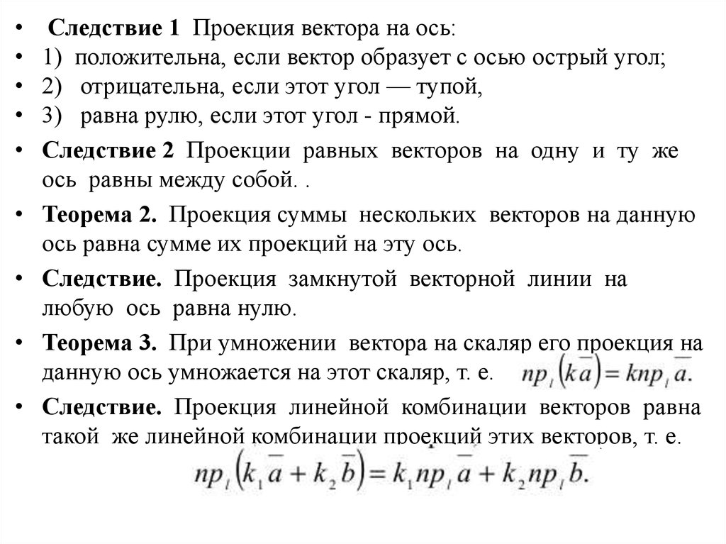 Теорема 2. Проекция суммы нескольких векторов на данную