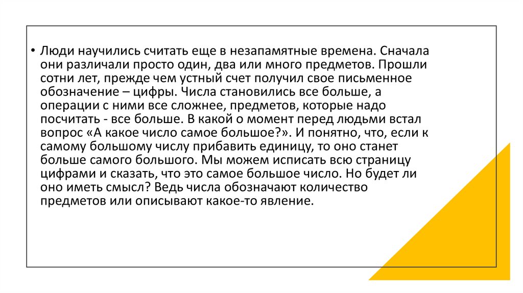 вопрос «А какое число самое большое?». И понятно, что, если к