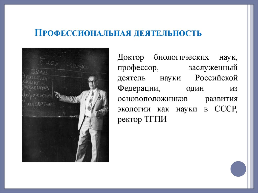 ПРОФЕССИОНАЛЬНАЯ ДЕЯТЕЛЬНОСТЬДоктор биологических наук,