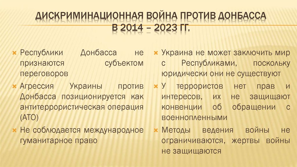 ДИСКРИМИНАЦИОННАЯ ВОЙНА ПРОТИВ ДОНБАССАВ 2014 – 2023 ГГ.