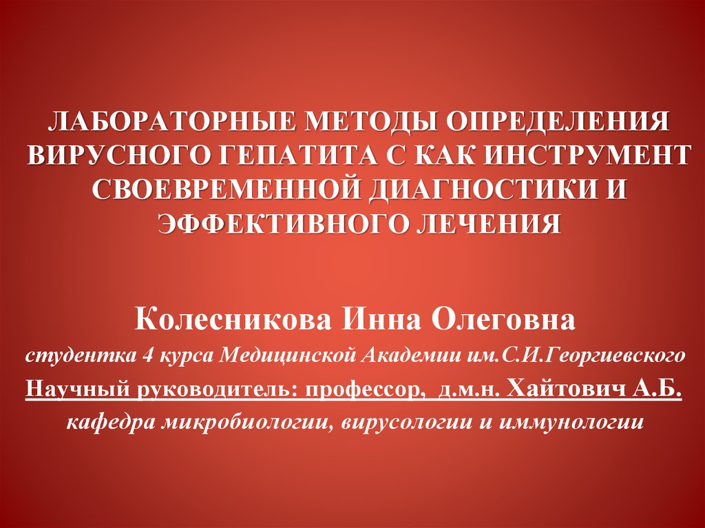 ЛАБОРАТОРНЫЕ МЕТОДЫ ОПРЕДЕЛЕНИЯВИРУСНОГО ГЕПАТИТА С КАК ИНСТРУМЕНТ