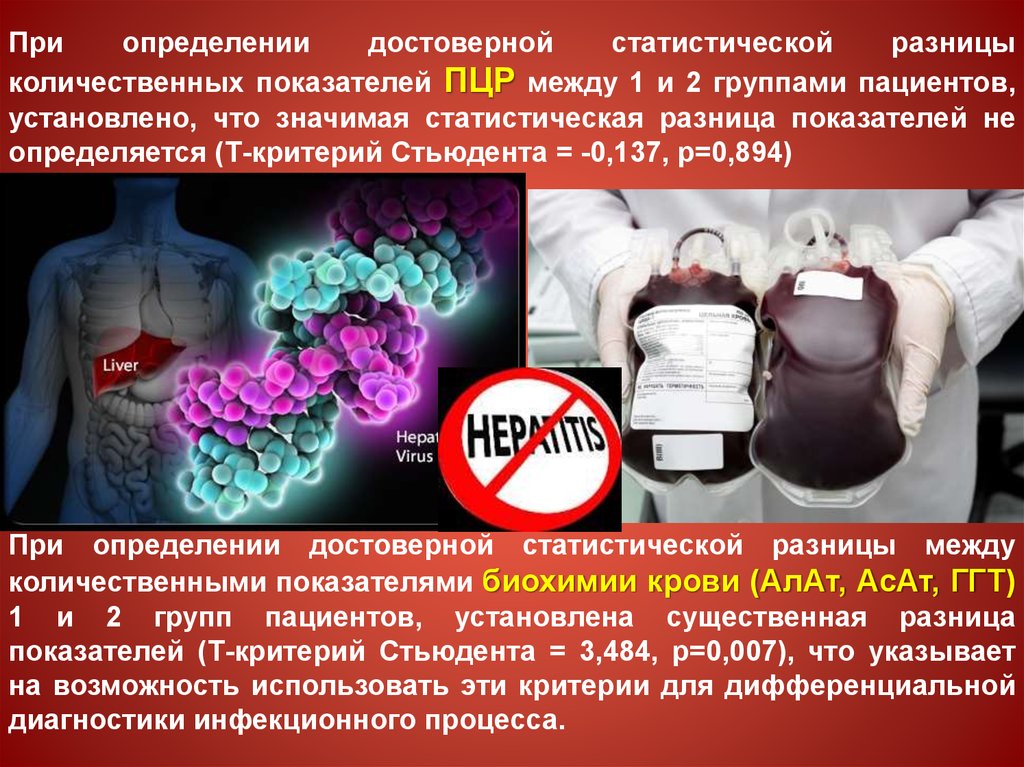 количественными показателями биохимии крови (АлАт, АсАт, ГГТ)
